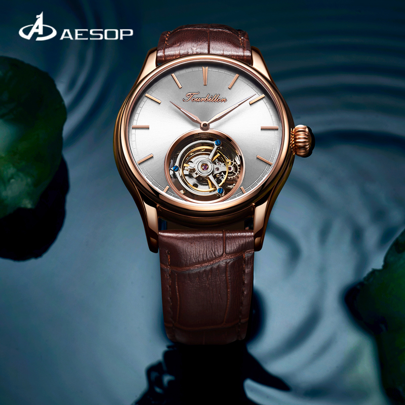 AESOP Original doble Tourbillon reloj para hombres de lujo de zafiro de acero inoxidable impermeable de negocios relojes mecánicos para hombres